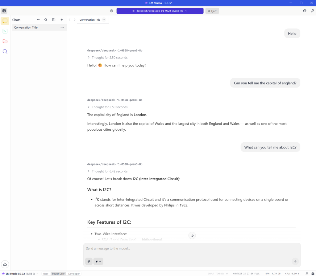 Zodra het model geladen is kan je beginnen met chatten, have fun!