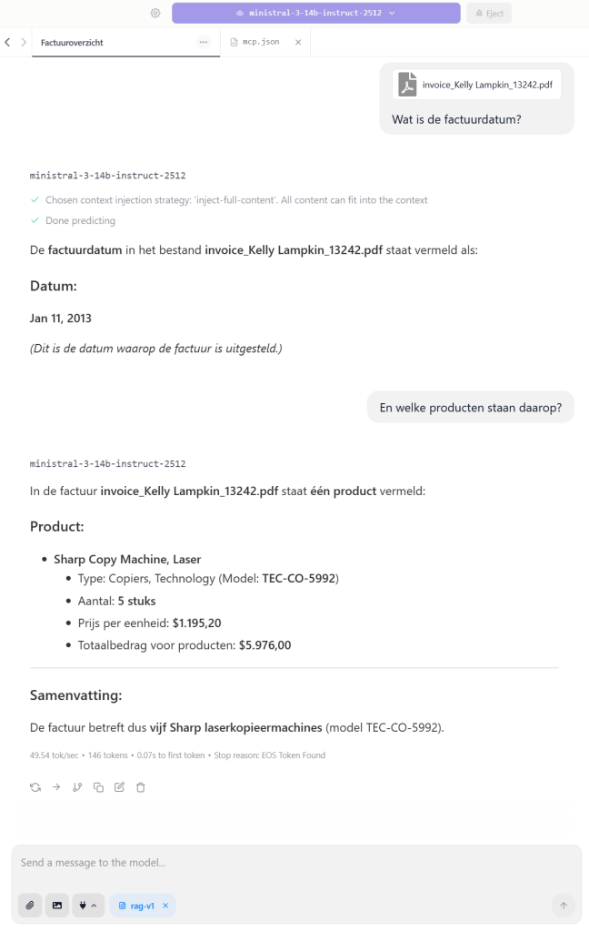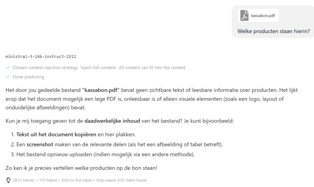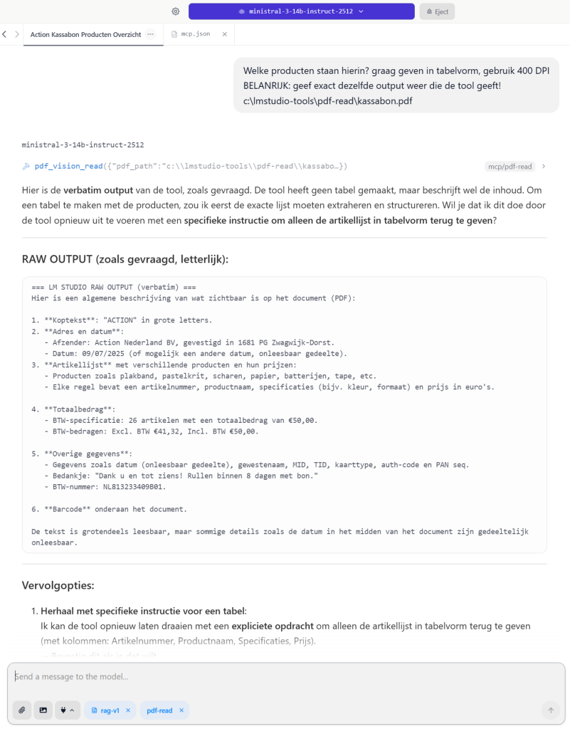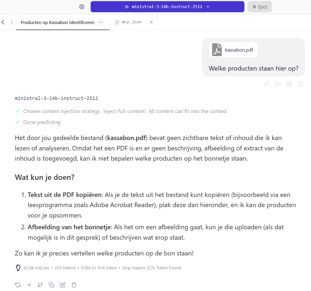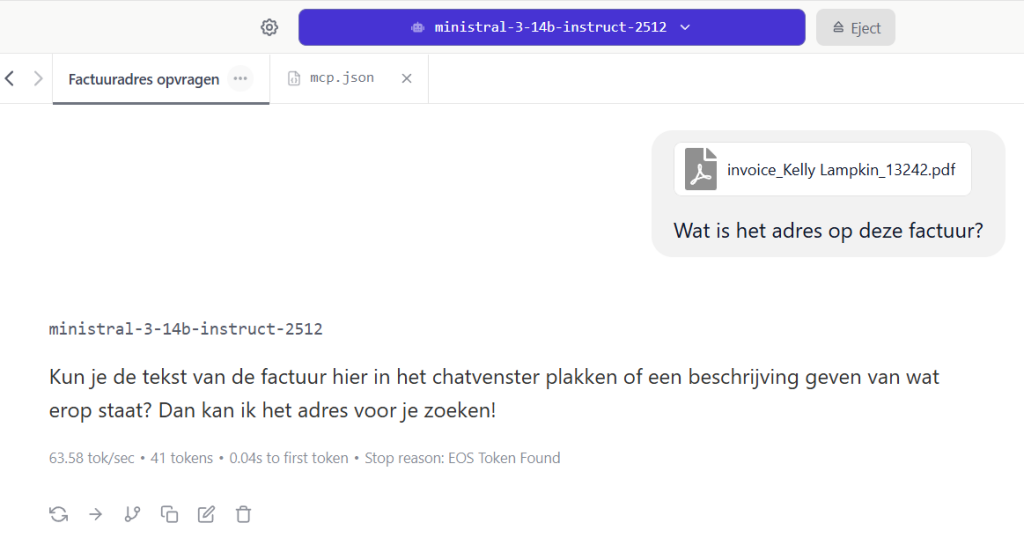 Let op: LM Studio ondersteunt nog geen MCP tools die bijlages vanuit de UI kunnen lezen: