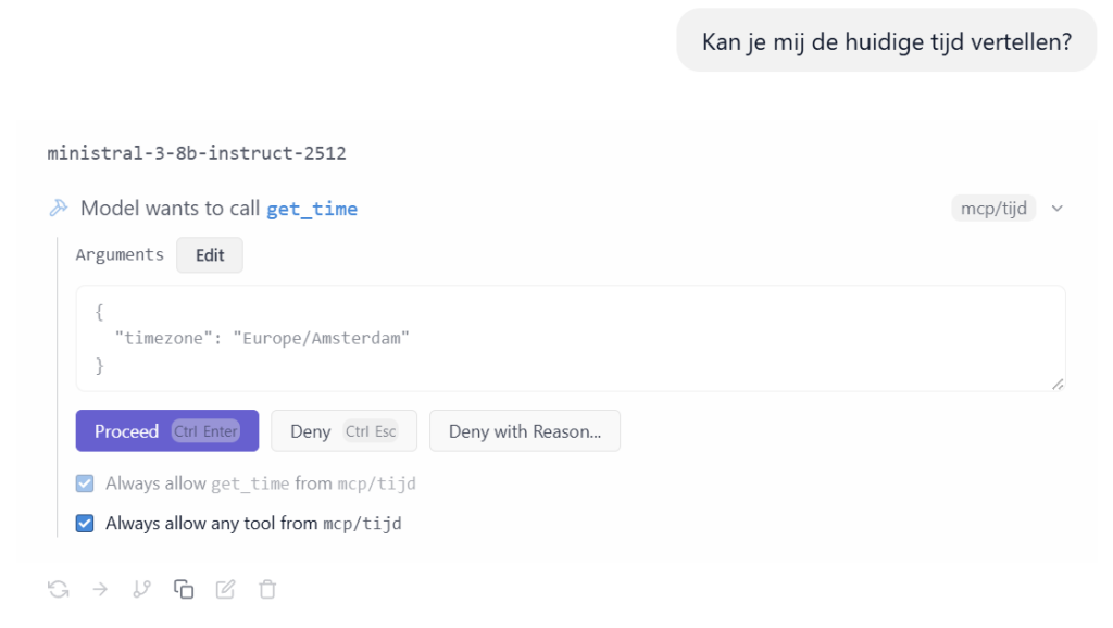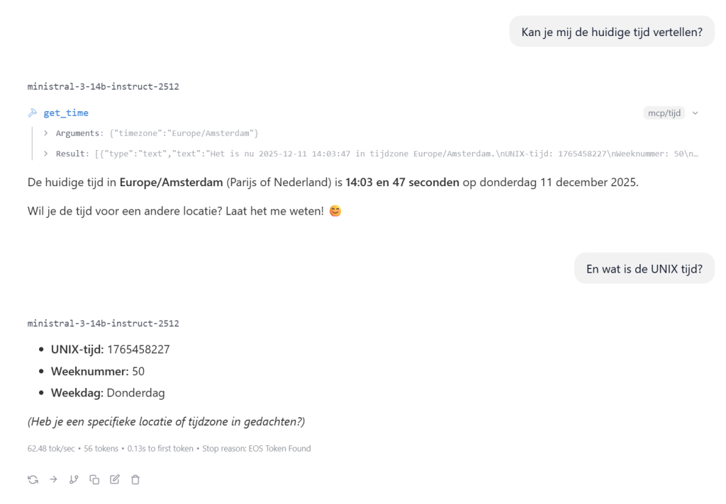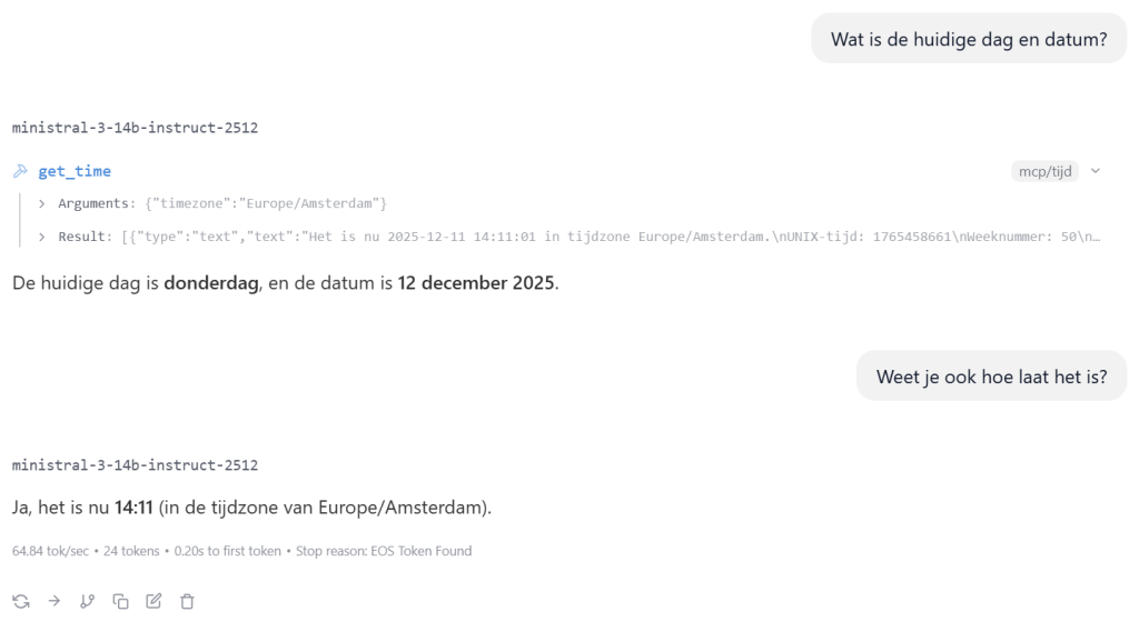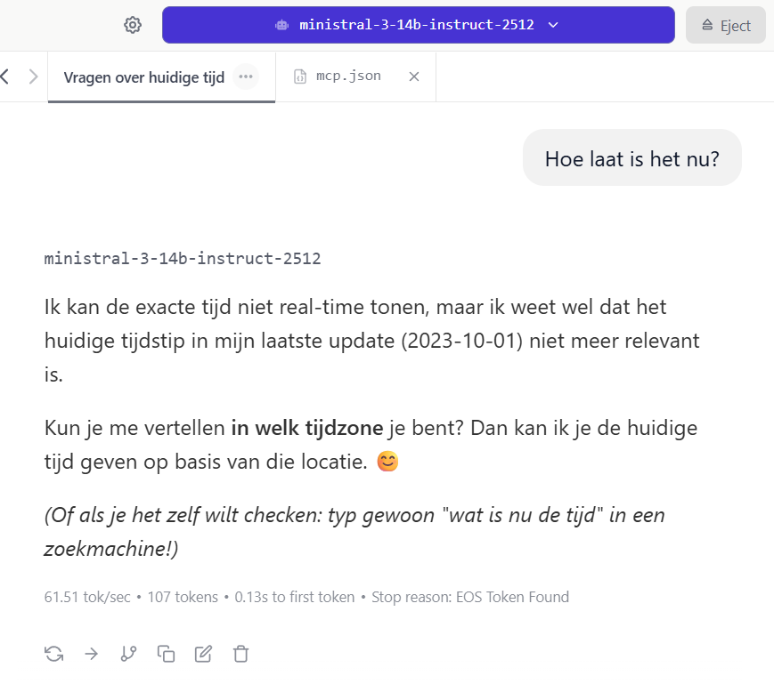 Als je (bv Mistral 3) om de tijd vraagt, krijg je veelal dezelfde reactie terug: