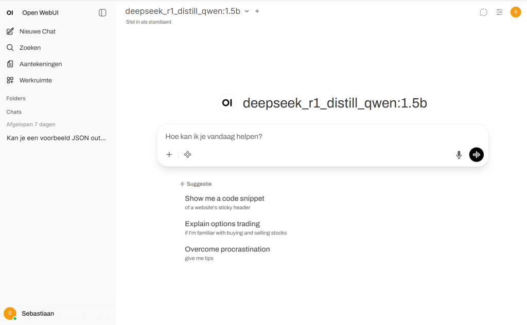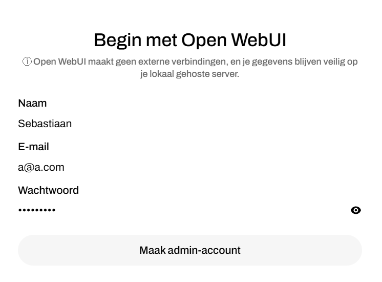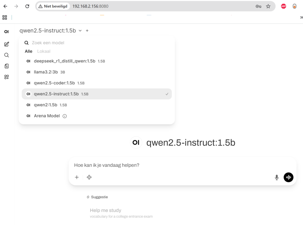 Open WebUI draait op poort 8080, via een browser kan je IP:POORT gebruiken om LLM’s te gebruiken met Open WebUI