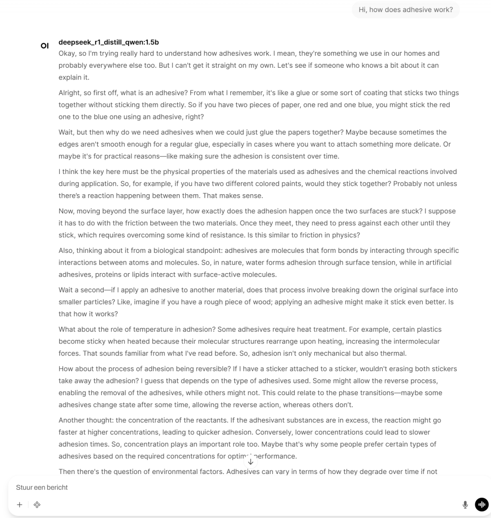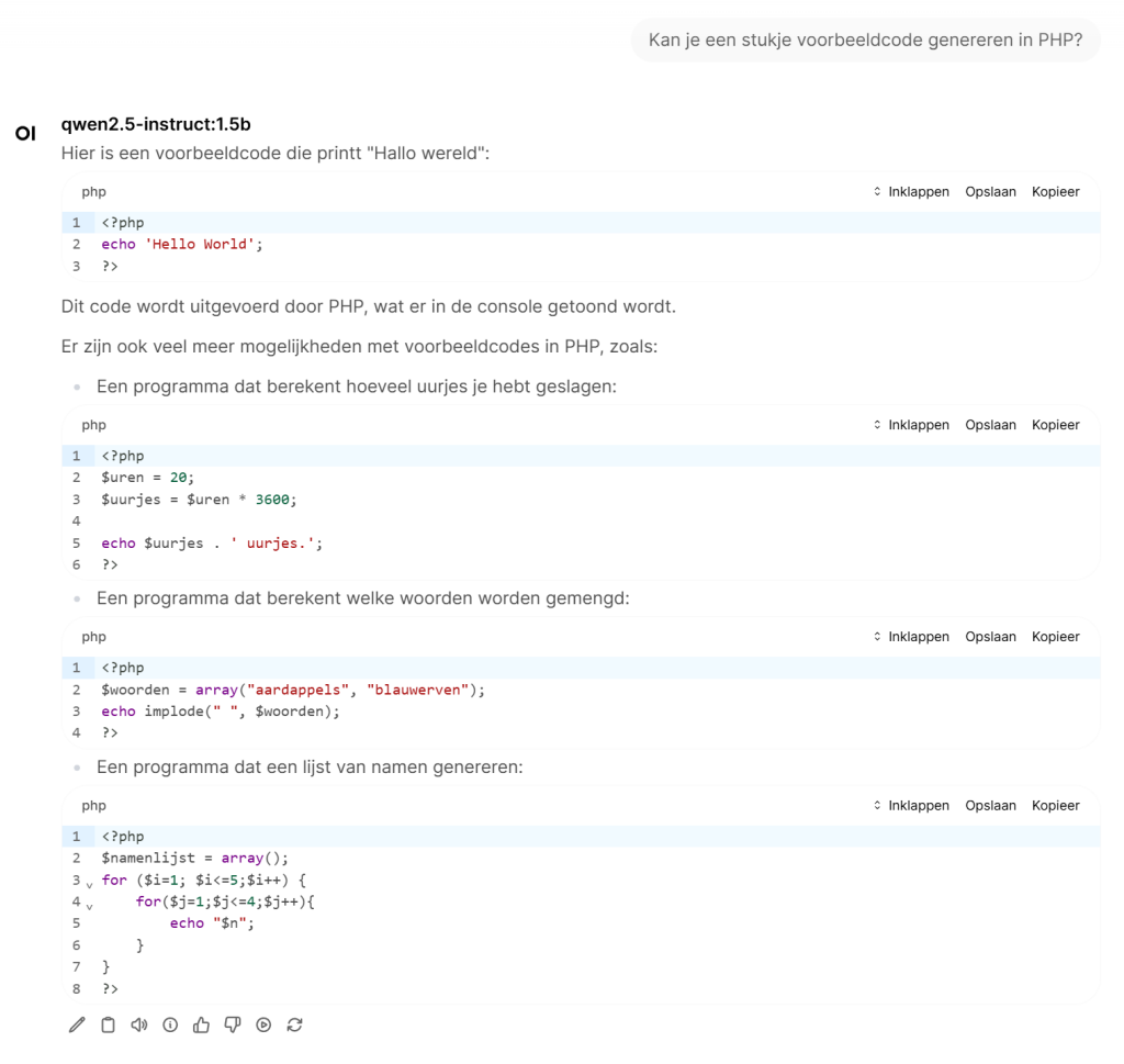 Je kan daarna een model selecteren en beginnen aan een chat: