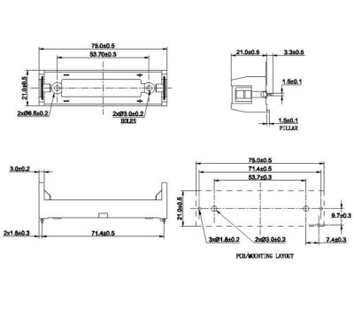 Tags: 1x18650, 3.6V, accucel, Batterij houder, C19184083, PCB, THT