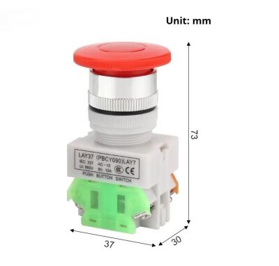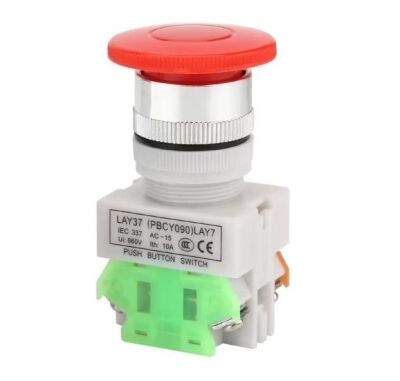 The LAY37 11ZS Emergency Stop Switch is a robust, self-locking safety switch designed for emergency power cut-off applications. Featuring a mushroom-shaped head for quick and easy activation, it offers one normally open (NO) and one normally closed (NC) contact configuration. Built with durable materials, it ensures reliable operation in industrial environments. The switch is compatible with standard panel mounting and supports a 30mm cutout. Its self-locking mechanism prevents accidental resets, enhancing safety compliance. Ideal for machinery, control panels, and equipment requiring emergency stop functionality.