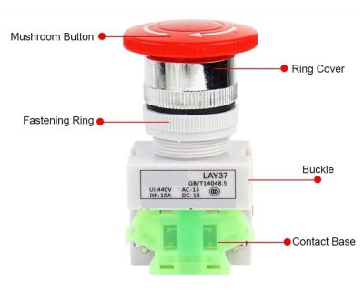 Drukknop Schakelaar Noodstop 600V 10A 1xNC 1xNO 30mm LAY37-11M