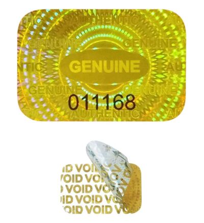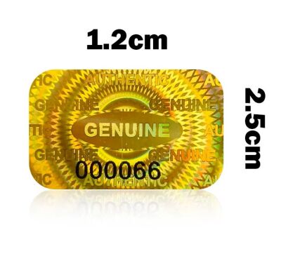 Garantiezegel 25x15mm met serienummer hologram genuine goud