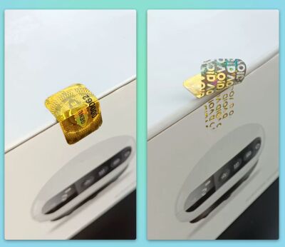 Tags: 25x15mm, Garantiezegel, genuine, goud, hologram, Serienummer