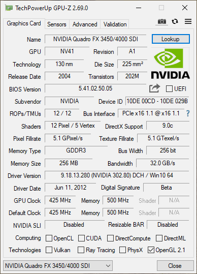 Tags: 128mb gddr3, 1xSTEREOSCOPIC 3D CONNECTOR, 2xDVI, Grafische kaart, NV41, nVidia, PCI-E 1.0 x16, Quadro FX 3450
