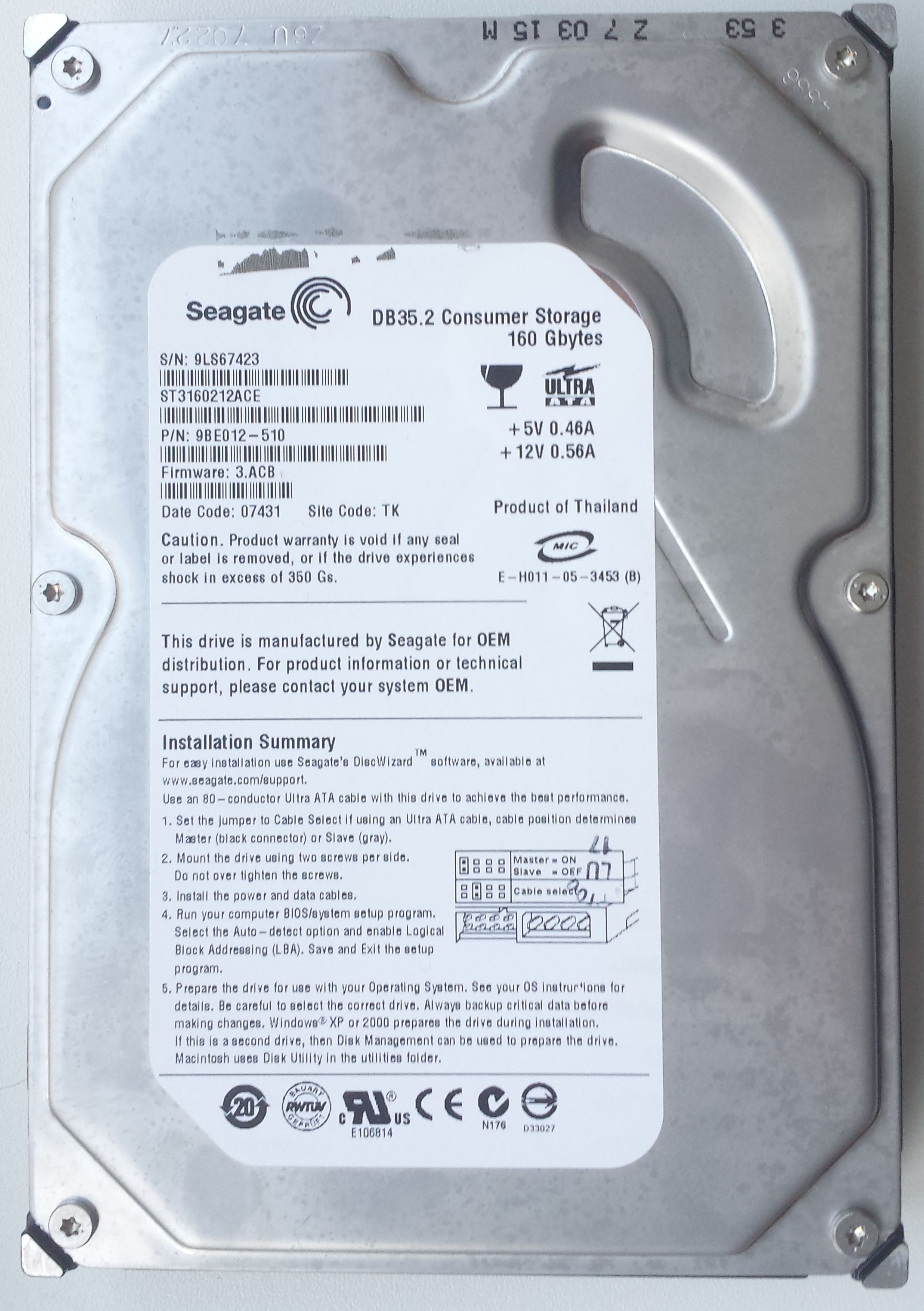 HDD PATA/100 3.5″ 160GB / Seagate DB35.2 (ST3160212ACE)
