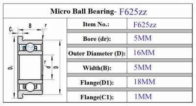 Tags: 5x16x5mm, F625ZZ, Kogellager, met flens