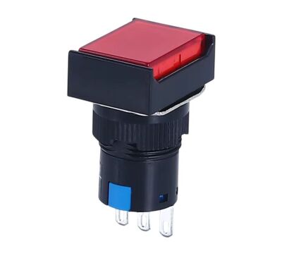 Tags: 16mm, 3-pin, drukknop schakelaar, la16 serie, LA16F-11, locking, rechthoek, rood