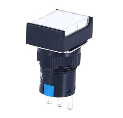 LA16 Serie Drukknop Schakelaar 16mm 3-pin locking LA16F-11 rechthoek wit