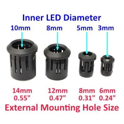 Tags: 5mm, clip, houder, Kunststof, LED, zwart