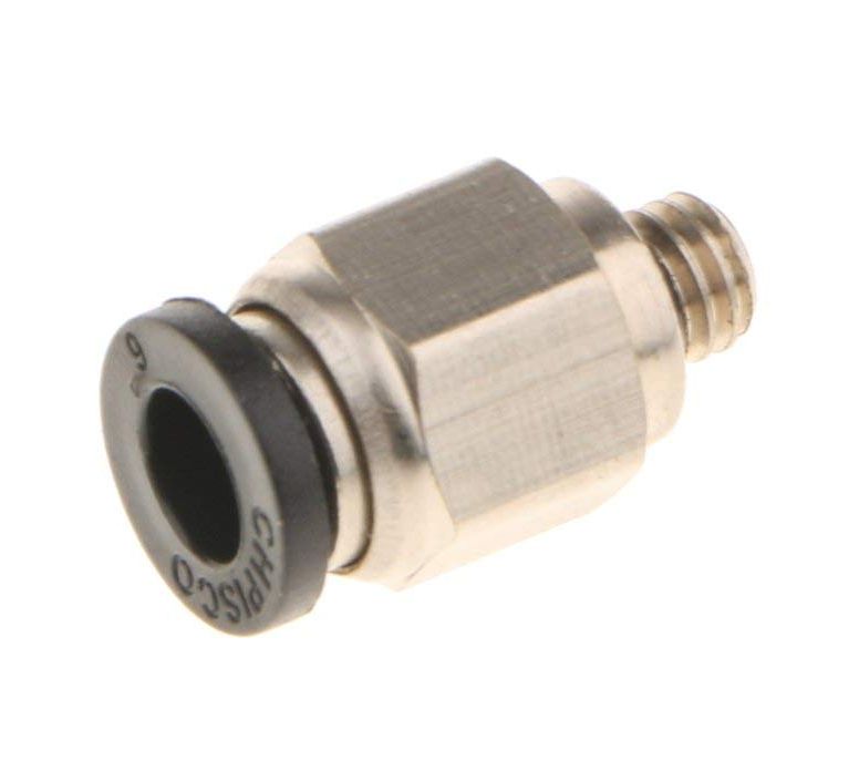 Gebruik deze rechte connector voor het koppelen van de PTFE-buis. Deze pneumatische fitting is geschikt voor PTFE-buizen met een buitendiameter van 6 mm.