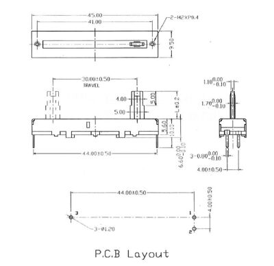 Note: de potmeter werkt vooral rond het midden lineair. Aan het begin en einde van de slag is het verloop minder lineair. Dit is een normaal kenmerk van lineaire schuifpotmeters.