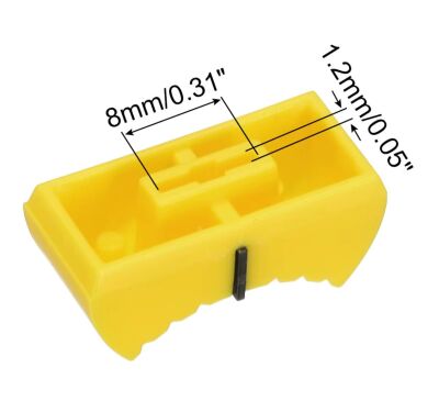 Potmeterknop 24x11x10mm voor slide potmeter met een schacht van 8×1.2mm geel/zwart