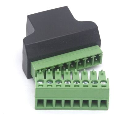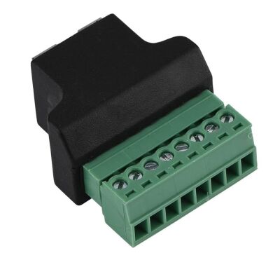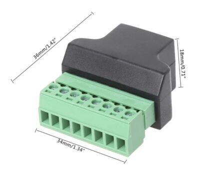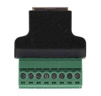The RJ45 Female to 8 Pin Screw Terminal Adaptor allows for seamless connections between standard RJ45 Ethernet cables and devices that utilize screw terminal connections. This versatile adaptor features a robust female RJ45 socket on one end, enabling easy integration into existing networks. The opposite end includes 8 screw terminals, facilitating a secure and reliable connection for various applications, such as data transfer and power supply. Its compact design ensures minimal space usage, making it ideal for both industrial and home settings. With this adaptor, users can effortlessly bridge the gap between different wiring standards, enhancing connectivity options. Durable construction ensures longevity and dependable performance in diverse environments.
