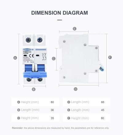 Schakelaar Automaat voor PV 1000V DC 63A 2P TOMZN TOB7Z-63