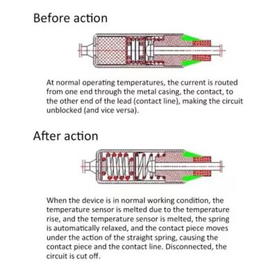 Een thermische zekering welke de verbinding onderbreekt bij een bepaalde temperatuur.