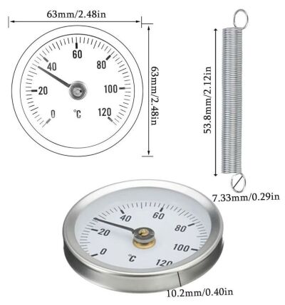 63mm diameter hot water pipe thermometer with spring for attaching to pipes
