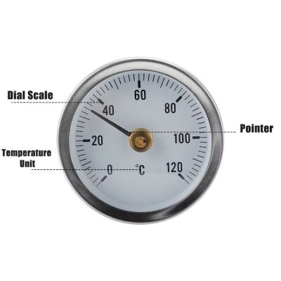 Thermometer Analoog 0-120 graden celsius 63mm clip-on-pipe model 2