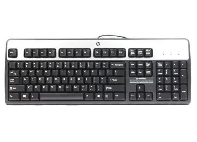 This HP wired keyboard features a stylish black and silver design with a reliable PS/2 interface. Specifically designed for HP desktops, workstations, and servers, this full-size keyboard provides a responsive typing experience and legacy compatibility with systems that still utilize PS/2 input. Ideal for enterprise IT deployments, government labs, or data centers requiring high-availability input hardware.