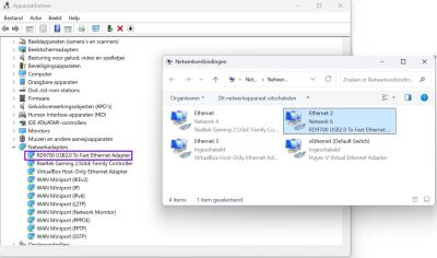 - Vaak zit er in goedkope blauwe/doorzichtige adapters een DM9601 of MCS9700, dit is dus die laatste.