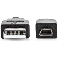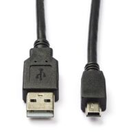 USB-A male naar USB-Mini male kabel 1.8M verguld met filter zwart