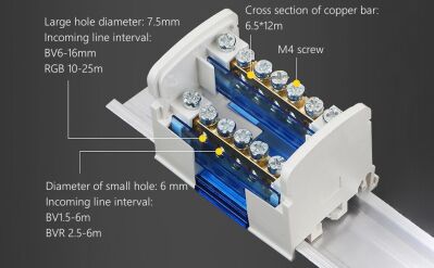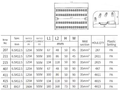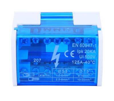 The 207 UKK 125A Din Rail Terminal Block Distribution Box is a professional-grade solution for electrical wiring. Its compact design, with a 2-layer junction box and 2 x 7 holes, allows for efficient wire management and space-saving installation. The terminal distribution box is crafted from high-quality PA nylon, providing a durable and flame-retardant enclosure that protects the internal components. The brass terminals, with a maximum current resistance of 125A, ensure reliable power transmission and long-lasting performance.