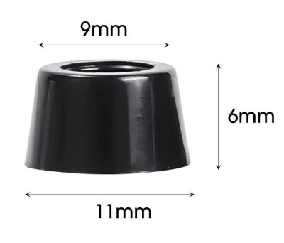 Voet Stootdop Bumper met metalen ring rond d=11mm h=6mm gat=3.2mm rubber zwart F02-36-05