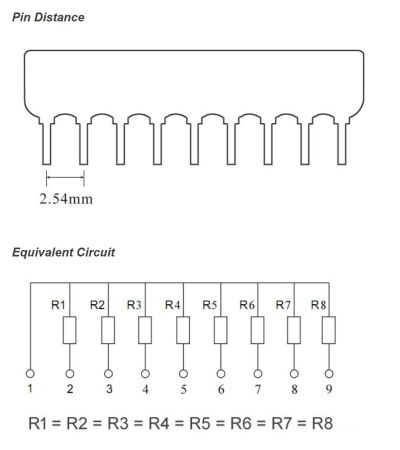 Een weerstand array met een pitch van 2.54mm, o.a. een handig onderdeel om snel vacuum fluriserende displays (VFD) mee aan te sturen.